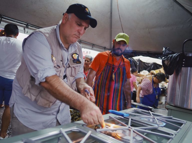 Our newest hero, however, fights hunger on a different playing field. It might be in the aftermath of a hurricane, a wildfire, or volcano, it could be in an area without water, electricity or passable roads. These are the hotspots of hunger where José Andrés works best.