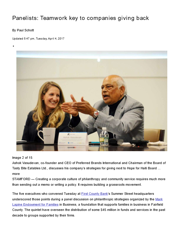 Ashok Vasudevan is Co-founder & CEO of Preferred Brands International, a Connecticut-based food company that makes Tasty Bite and a range of other natural, ethnic and specialty foods sold in major supermarkets globally.