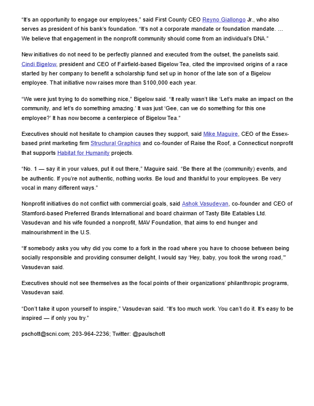 She has served on some non-profit boards in the US, and is currently on the board of the United Way of Western Connecticut.